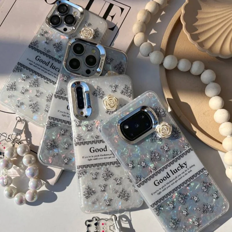 لنز باز و دور لنز فلزی دورتادور گارد ژله ای گل برحسته طرح زمینه ماربل همراه با اویز مرواریدی