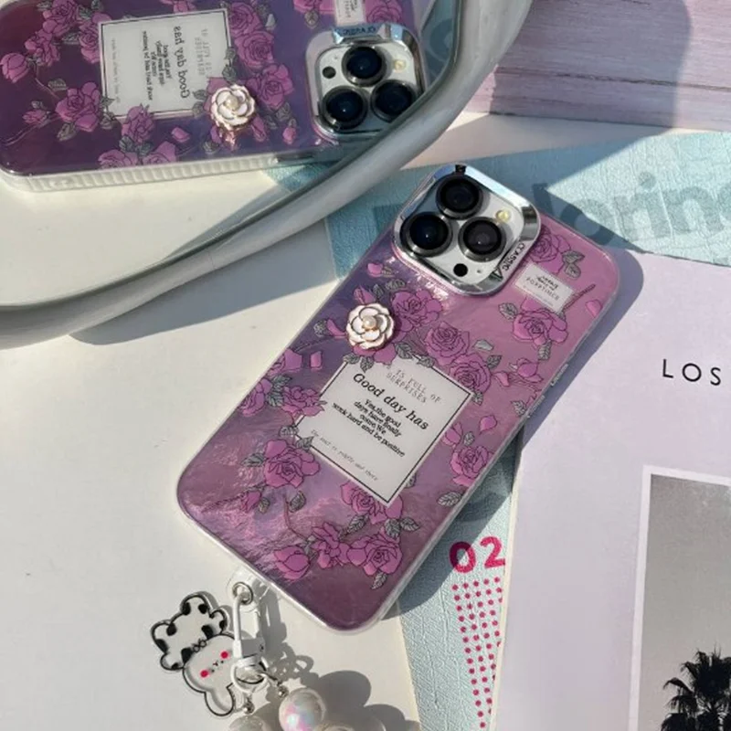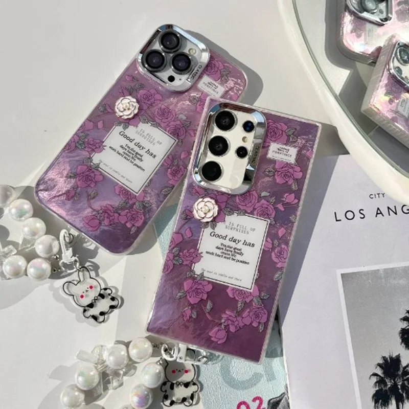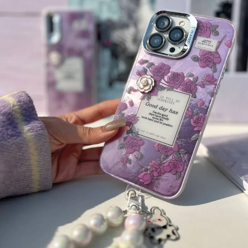 ماربل گل بنفش🌸 لنز باز و دور لنز فلزی دور تا دور گارد ژله ای گل برجسته  طرح زمینه ماربل همراه با آویز مرواریدی محافظ دور تا دور گوشی آیفون-سامسونگ-شیائومی