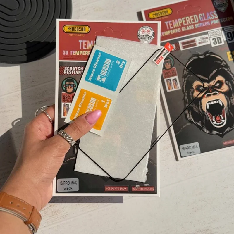 MOCOSON TEMPERED GLASSگلس شیشه ای موکوسوندارای پک مقوایی و پد1. نوع محافظ: گلس 3D خمیده (Curved Surface).2. سختی سطح: 9H (مقاومت بالا در برابر خراش).3. مقاوم در برابر خط و خش: Scratch Resistant.4. مقاومت در برابر اثر انگشت: Anti-fingerprint.5. وضوح بالا: 99% HD Appearance.6. مقاوم در برابر ضربه: Toughness (Not easy to break).لایههای محافظتی ۶ لایه :• لایه ضد لک (Nano Antifouling Layer).• لایه انتشار (Diffusion Layer).• لایه شیشه (Glass).• لایه بافر (Buffer Layer).• لایه محافظ (Protective Layer).• لایه جاذب (Adsorptive Layer).ضد شوک: مقاوم در برابر ضربههای ناگهانی.پشتیبانی از تاچ روان: Fingerprint-resistant smooth to the touch