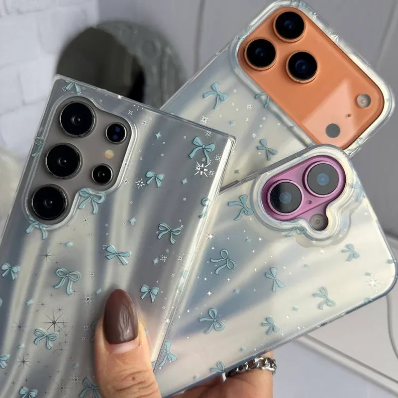 گارد گوشی blue ribbon طرح براش دارای پک لنز باز دور ژله ای محافظ دور تا دور گوشی ضد ضربه بدون آویز