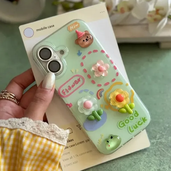 کاور گوشی آیفون گل برجسته زمینه سبز (کدC2107)