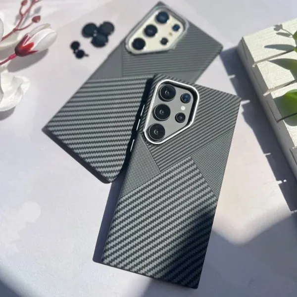 این قابها از متریالی به نام فیبر کربن ساخته شدهاند که یکی از پیشرفتهترین و مقاومترین مواد در دنیای تکنولوژی است. 🔹 سبک و مقاوم: فیبر کربن بسیار سبکتر از فلز و پلاستیک 🔹 طراحی لوکس و خاص: الگوی خاص و زیبای بافت فیبر کربن باعث میشود قاب ظاهری مدرن، لوکس و حرفهای داشته باشد. 🔹 مقاوم در برابر حرارت و شرایط محیطی: فیبر کربن تحمل بالایی نسبت به حرارت و شرایط محیطی سخت دارد و با مرور زمان تغییر شکل نمیدهد.
