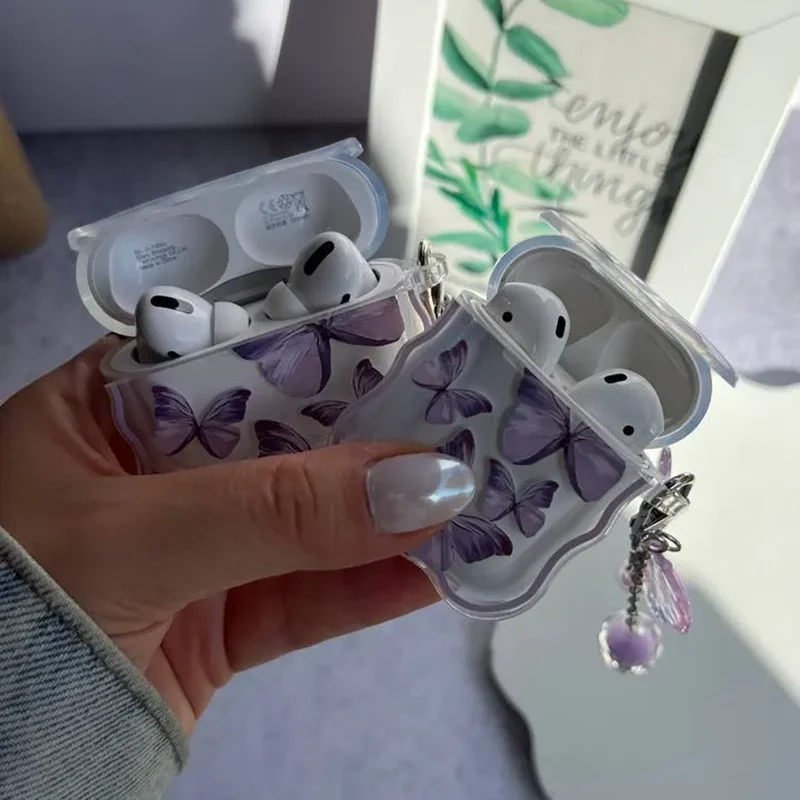✨ کاور ایرپاد طرح پروانه ✨ این کاورهای زیبا از جنس پلاستیک شفاف و مقاوم (TPU) هستن که هم سبکان هم در برابر خط و خش محافظت میکنن. روی بدنه با طرحهای برجستهی پروانههای بنفش تزئین شدن که جلوهای لطیف و خاص بهشون داده. همراهش یه آویز کریستالی پروانهای با جزئیات درخشان و مهرههای بنفش شیشهای داره که به قلاب فلزی مقاوم متصل میشه — هم کاربردی برای آویز کردن، هم زیبا برای استایل دادن به ایرپادت 💜🦋