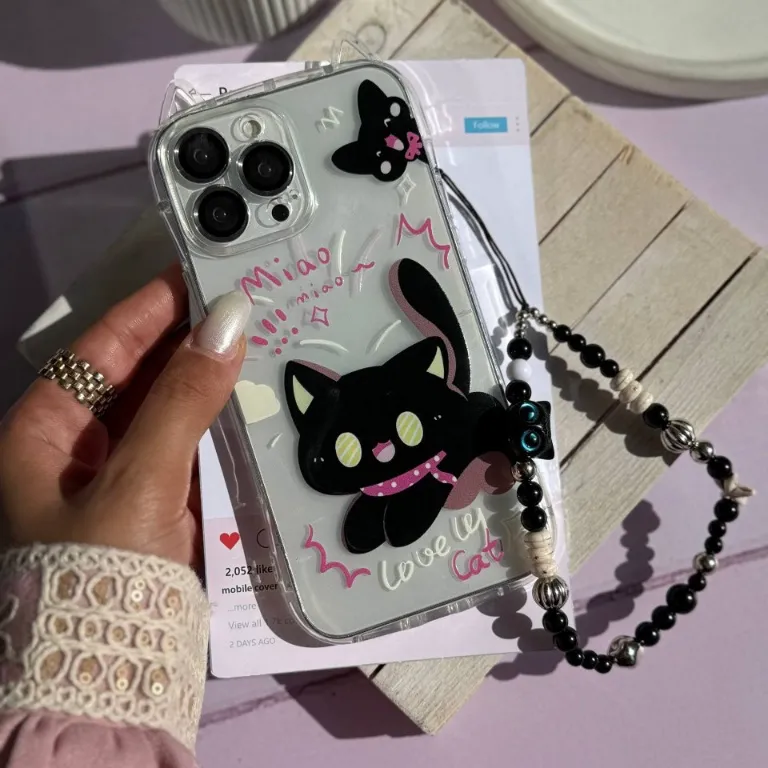 قاب گربه مشکی گوشدار با طراحی فانتزی و آویز جذاب، انتخابی عالی برای دوستداران استایل خاص است. این قاب گوشی آیفون از جنس منعطف ساخته شده و با پوشش کامل، از گوشی در برابر ضربه و خطوخش محافظت میکند. دکمههای نرم آن تجربه کاربری راحتی ارائه میدهند. مناسب برای مدلهای iPhone 11 تا 16 Pro Max، این قاب گوشی دخترانه آیفون ترکیبی از ظرافت و محافظت است. ظاهر براق و گوشهای گربهای آن، جلوهای خاص به گوشی میبخشد و بهعنوان یک قاب گوشی جدید گزینهای ایدهآل برای استایل روزمره محسوب میشود.