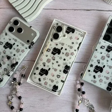 این قابها از جنس TPUکه منعطف ساخته شدن ،و محافظت عالی از گوشی، در برابر خط و خش و ضربه مقاومت بالایی دارن. سطح قاب براق و ضد زردی هست، طراحی چاپی با طرحهای فانتزی گربه و ستاره و قلب بهصورت UV چاپ شده، بنابراین رنگها ماندگار و ضد پوسته شدن هستن. هر قاب همراه با بند مرواریدی دستساز ارائه میشه که ترکیبی از مهرههای صورتی، مشکی و نقرهایه — هم برای استایل و هم برای امنیت بیشتر گوشی 💕