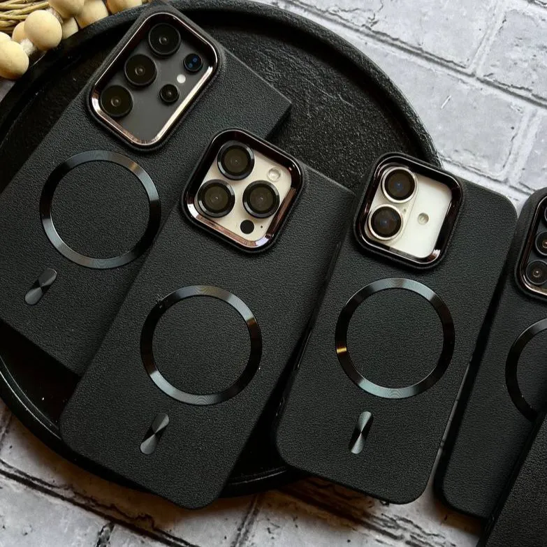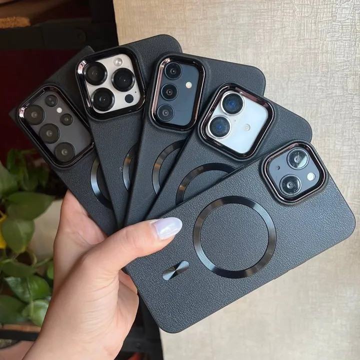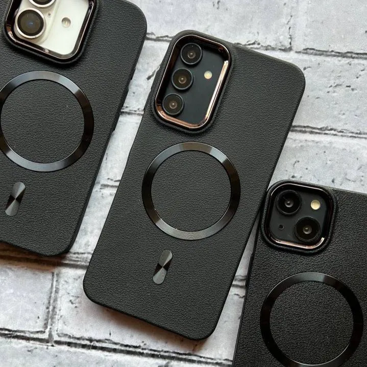قاب چرمی مگ‌سیف با طراحی شیک و مقاوم، مناسب انواع مدل‌های iPhone، Samsung و Xiaomi. مجهز به آهنربای قوی برای شارژ بی‌سیم و اتصال مطمئن، همراه با محافظ لنز متال. موجود در سایت moboface.ir.