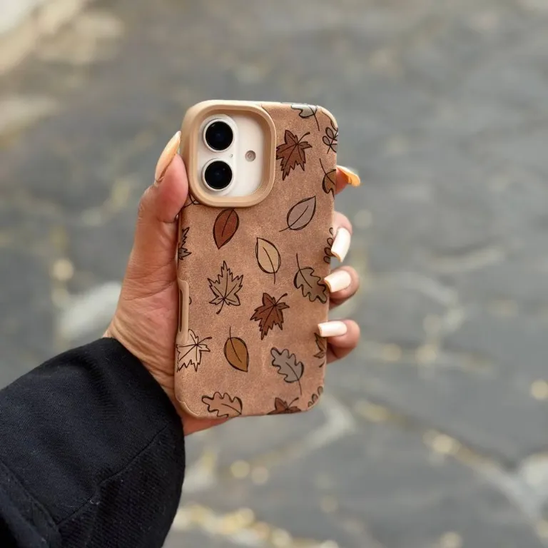 قاب برگ پاییزی مخملی با طرح برگهای گرم و لطافت مخمل، محافظت عالی و حس پاییز را به گوشی شما میبخشد. سازگار با مدلهای iPhone 12، 12 Pro، 12 Pro Max، 13، 13 Pro، 13 Pro Max، 14 Pro Max، 15 Pro Max، 16، 16 Pro، 16 Pro Max، 17، 17 Pro و 17 Pro Max؛ مقاوم، خوشدست و شیک.
