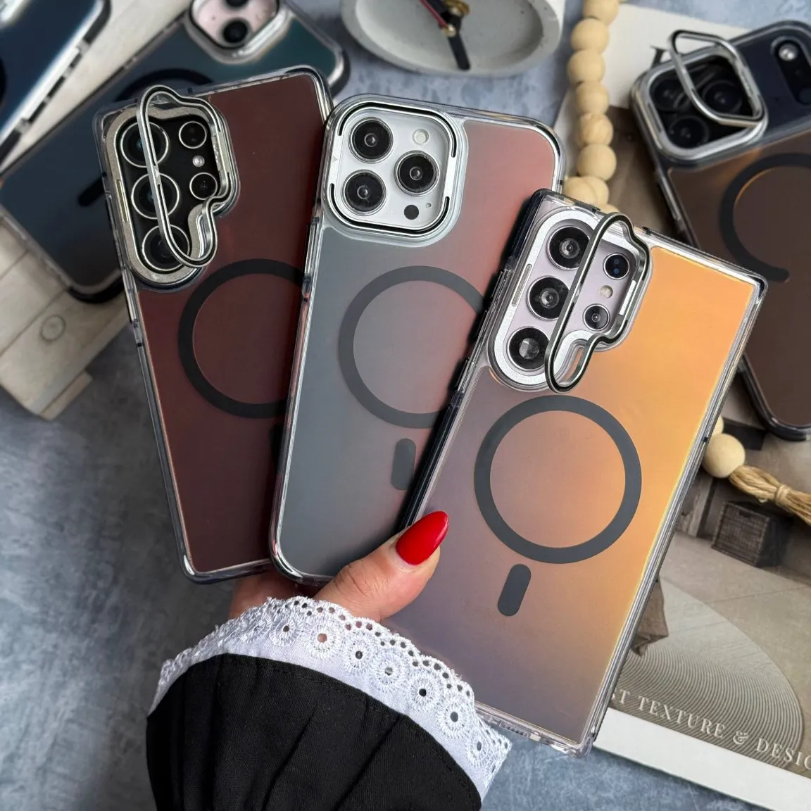 این قاب مجیک هولوگرامی لنز Q Series اورجینال ترکیبی از طراحی چشمنواز و محافظت حرفهایه که گوشی شما رو به یک اکسسوری خاص تبدیل میکنه. ظاهر براق و چندرنگش باعث شده جزو محبوبترین مدلهای قاب گوشی دخترانه باشه؛ مخصوصاً برای کسایی که استایل شیک و متفاوت دوست دارن. بدنهی مقاوم و شفاف این قاب هولوگرامی در برابر ضربه، خط و خش و فشار روزمره محافظت عالی ایجاد میکنه و مهمتر از همه، در طول زمان تغییر رنگ نمیده.وجود مگسیف فعال و بسیار قوی، اتصال مطمئن به شارژر و هولدرهای مغناطیسی رو تضمین میکنه. طراحی هوشمندانه قاب بهصورت قاب استند شو این امکان رو میده که گوشی رو برای تماشای ویدیو یا تماس تصویری بهراحتی روی میز قرار بدین. لبههای تقویتشده، محافظ لنز حرفهای و فریم خوشدست، این محصول رو به یک قاب لاکچری تمامعیار برای آیفون و سامسونگ تبدیل کرده؛ انتخابی خاص برای کسایی که هم زیبایی میخوان هم امنیت. 😎📱✨