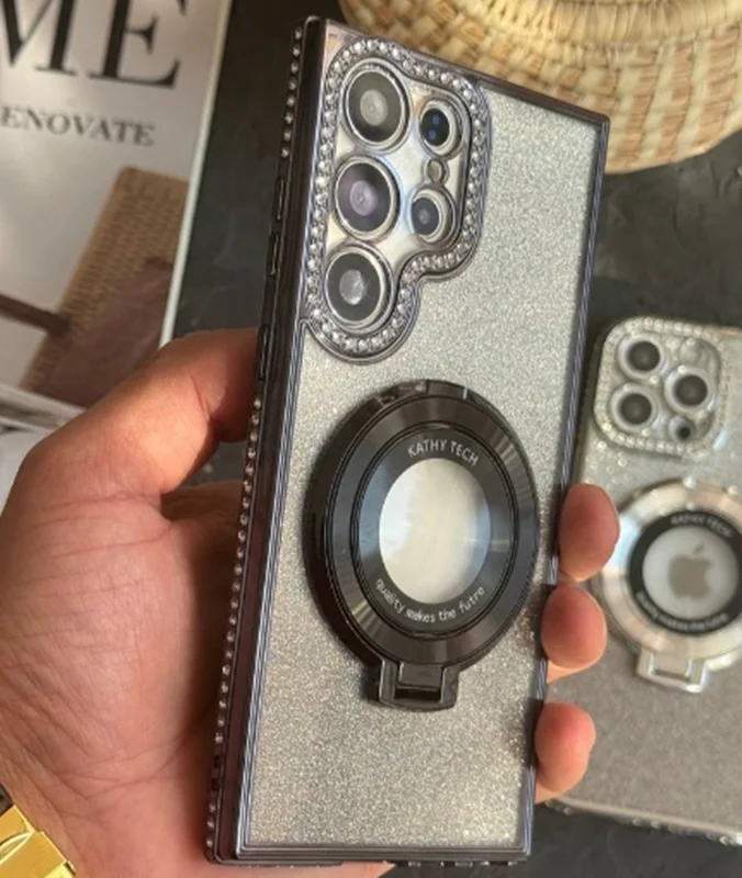 قاب موبایل سامسونگ کلاسیک دور نگین، ترکیبی از زیبایی و کارایی! با طراحی منحصر به فرد مگسیفیت و قابلیت استندشو، این قاب نه تنها از موبایل شما محافظت میکند، بلکه جلای خاصی به آن میبخشد. رنگبندی مشکی و نقرهای آن، جلوهای شیک و مدرن به گوشی شما اضافه میکند. خرید کنید و موبایل خود را خاصتر کنید!